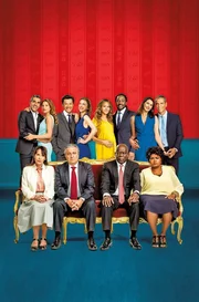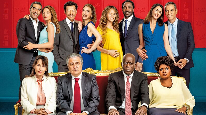 (hinten v.l.n.r): David Benichou (Ary Abittan), Odile Verneuil-Benichou (Julia Piaton), Chao Ling (Frédéric Chau), Ségolène Verneuil-Ling (Émilie Caen), Laure Verneuil (Élodie Fontan), Charles Koffi (Noom Diawara), Isabelle Verneuil-Benassem (Frédérique Bel), Rachid Benassem (Medi Sadoun). (vorne v.l.n.r.): Marie Verneuil (Chantal Lauby), Claude Verneuil (Christian Clavier), André Kofi (Pascal N’Zonzi), Madeleine Kofi (Salimata Kamate).Bild: © ARD Degeto/Neue Visionen Film