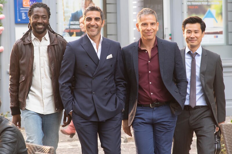 Denkbar ungleiche Brüder, l-r: Noom Diawara als Charles Kofi, Ary Abittan als David Benichou, Medi Sadoun als Rachid Benassem, Frédéric Chau als Chao LingBild: © PLURIMEDIA (UGC Distribution / Les Films du 24 / Les Films du Premier / TF1 Films Production)
