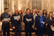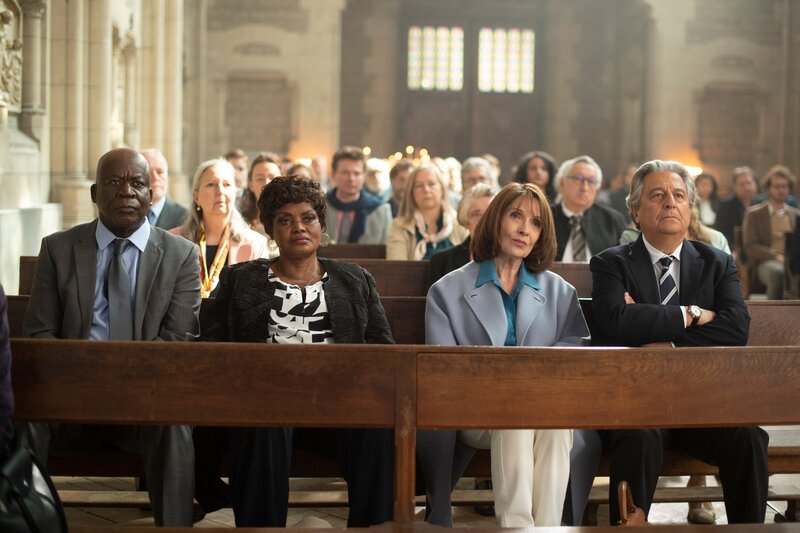 Fantastische Vier…(v.li.): André Koffi (Pascal N'Zonzi), Madeleine Koffi (Salimata Kamate), Marie Verneuil (Chantal Lauby) und Claude Verneuil (Christian Clavier) teilen eine fromme Minute.Bild: © UGC Distribution