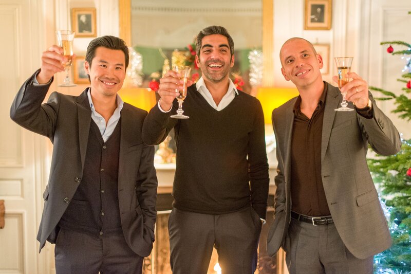 Die drei Schwiegersöhne (v. l. n. r.) von Monsieur Claude in seltener Harmonie: Chao (Frédéric Chau), David (Ary Abittan) und Rachid (Medi Sadoun).Bild: © ARD Degeto/Neue Visionen Filmverleih GmbH