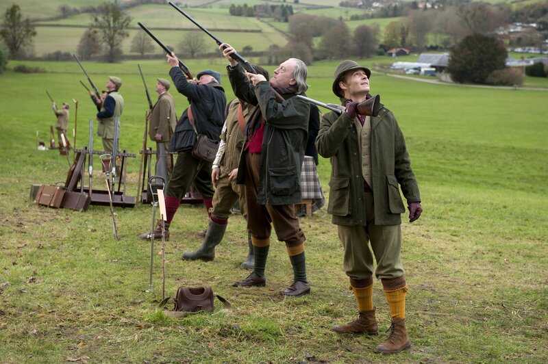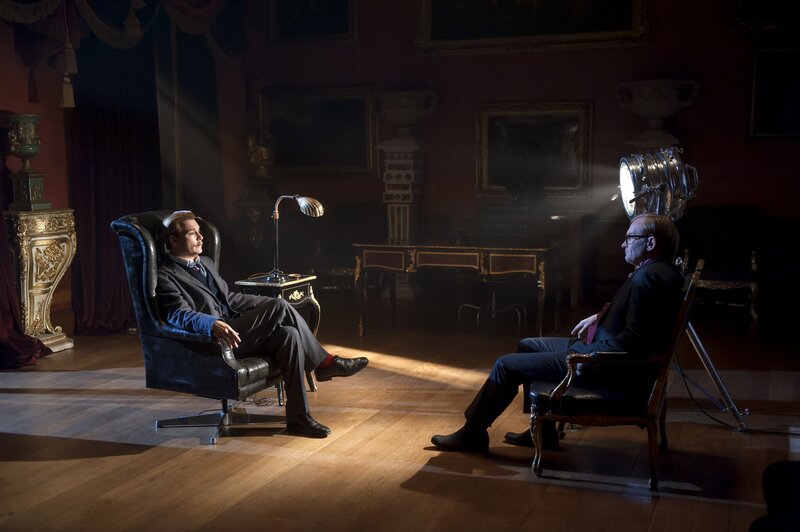 Um an Informationen über ein wertvolles Gemälde zu kommen, stattet der hoch verschuldete Lord Mortdecai (Johnny Depp, r.) seinem Kunsthändlerkollegen Sir Graham (Michael Culkin, 2.v.r.) einen Besuch ab. Doch wird er von ihm wirklich die benötigten Infos bekommen?