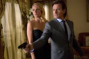 Auf der Suche nach einem wertvollen Gemälde trifft Mortdecai (Johnny Depp, oben) in Los Angeles auf die verführerische Georgina (Olivia Munn, unten). Aber wird sie ihn tatsächlich von seiner Mission abbringen können?