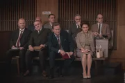 Vorne, l-r: Journalist Tagespost (Edmund Jäger), Journalist Krone (Christian Dungl), Karl Nowak (Rainer Wöss), Rosa Segev (Melita Jurisic).Bild: © ORF