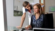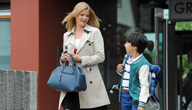 Mia (Mira Bartuschek) holt ihren Sohn Leon (Yanis Scheurer) von der Schule ab.Bild: © ARD Degeto/Marco Orlando Pichler