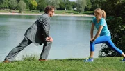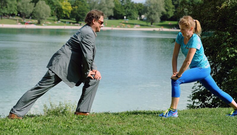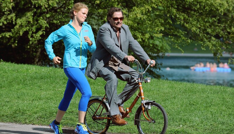 Mia (Mira Bartuschek) will mit Hilfe des Ex-Polizeiausbilders Sams (Martin Feifel) für die Aufnahmeprüfung bei der Polizeit fit werden, doch der nimmt seinen Job offenbar nicht wirklich ernst.Bild: © ARD Degeto/Marco Orlando Pichler