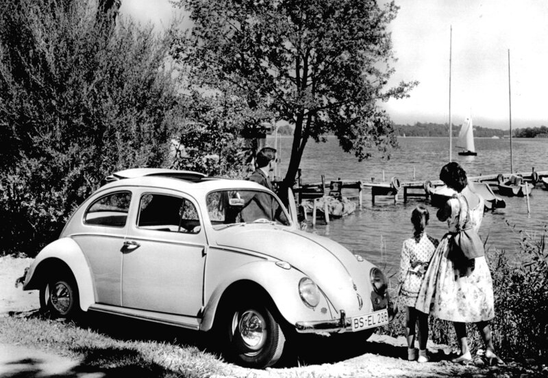 Der Deutschen liebstes motorisiertes Kind in der Nachkriegszeit war der VW Käfer. Er machte sie auf dem Weg zur Arbeit wie zur Erholung mobil.Bild: © ZDF und pa/dpa-Bildfunk
