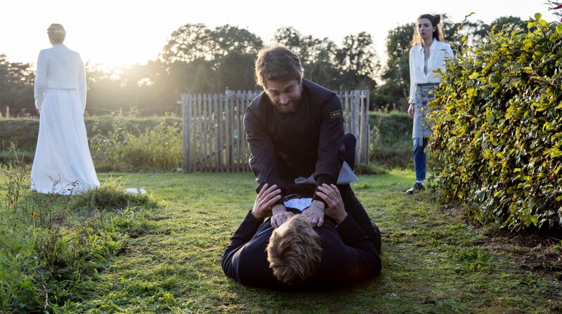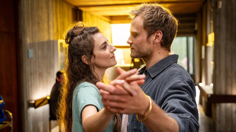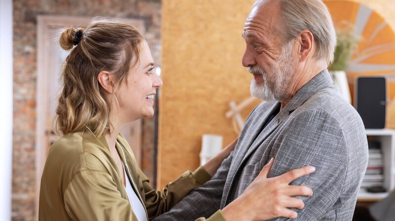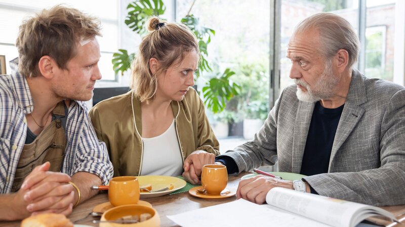 Weil ihr Catering für die Hochzeit abgesagt wurde, landet Saskia (Hanna Plaß, li.) bei Matthias (Nico Rogner, Mitte) und dessen Tochter Amelie (Virginia Leithäuser, re.) im Restaurant zum Probeessen.