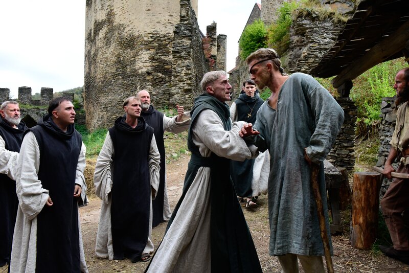 L-R: Meister Niklas (Uwe Ochsenknecht), Goldmund (Jannis Niewöhner).Bild: © ORF/Lotus Film/Jürgen Olczyk/Sony Pictures Entertainment Deutschland