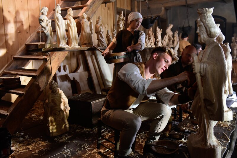 In der Lehre bei Bildhauer Niklaus trifft Goldmund (Jannis Niewöhner) auf die Magd Lene (Henriette Confurius), die nicht nur seine Kunst bewundert.Bild: © ORF/Lotus Film/Jürgen Olczyk/Sony Pictures Entertainment Deutschland