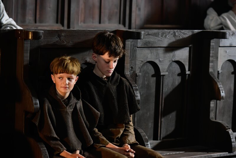 Goldmund (Jeremy Miliker, l.) und Narziss (Oskar von Schönfels, r.) als Kinder im Benediktinerkloster.Bild: © ORF/Lotus Film/Jürgen Olczyk/Sony Pictures Entertainment Deutschland
