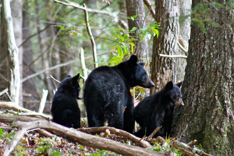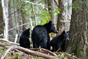 Black Bear (Ursus americanus) mother and cubs in fall woodlandBild: © Discovery Communications, Inc.