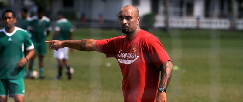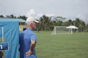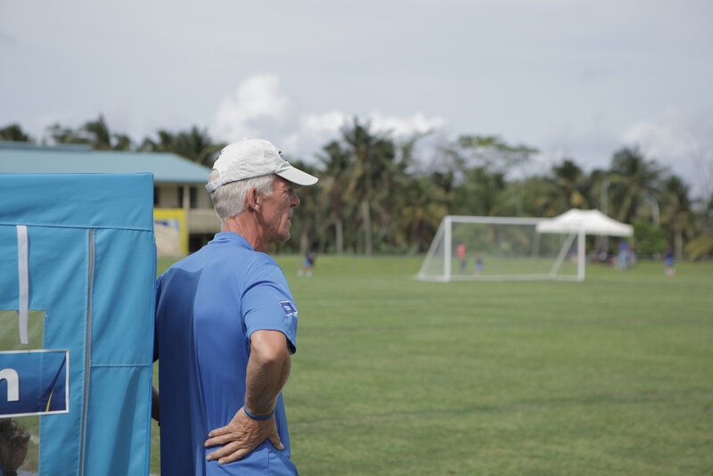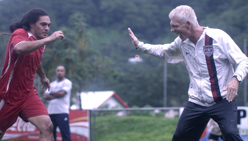 Trainer Thomas Rongen coacht sein Team aus Amerikanisch-Samoa beim Qualifikationsspiel gegen Tonga.Bild: © Foto: Geo Television