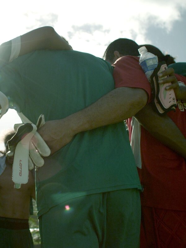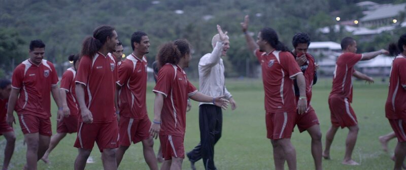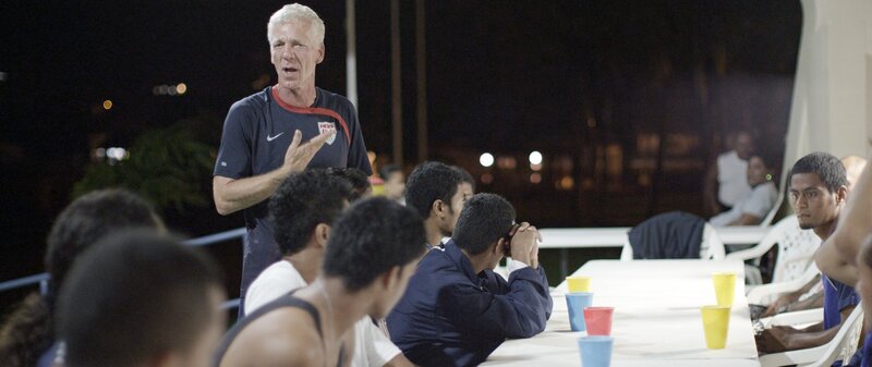 Der neue Trainer Thomas Rongen (l.) erläutert den Spielern seine Motivation, nach Amerikanisch-Samoa zu kommen.Bild: © Geo Television