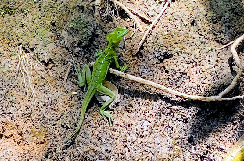 Ein Stirnlappenbasilisk in Los Guatuzos in Nicaragua.Bild: © Jessica Szczakiel/Susanne Brand / Ein Wasserläufer im Nationalpark Los Guatuzos in Nicaragua