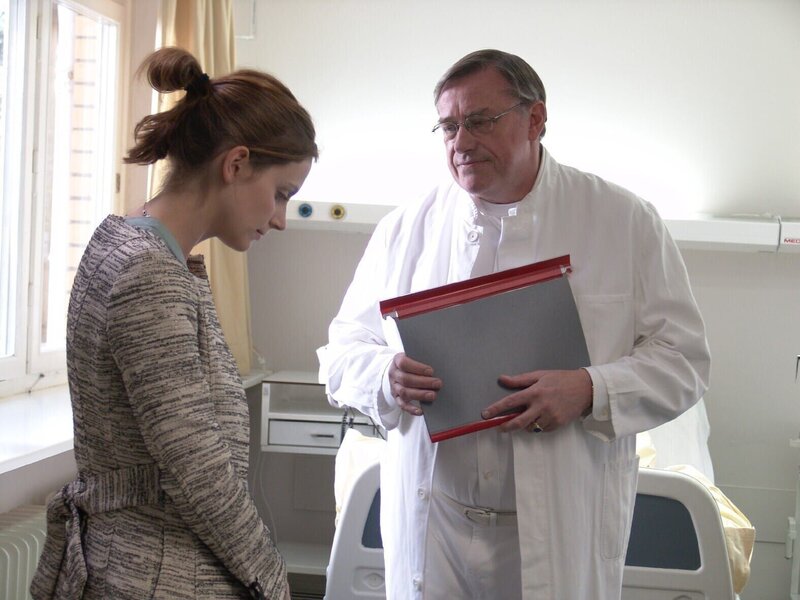 Der behandelnde Arzt Dr. Reinhard (Wilfried Dziallas, r.) rät Andrea (Marie Zielcke, l.) ihr Leben gründlich zu ändern und mehr auf ihren Körper zu achten.
