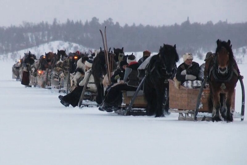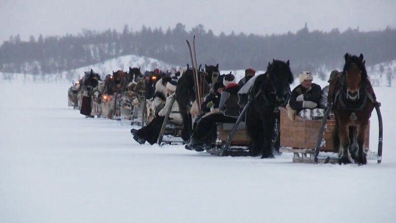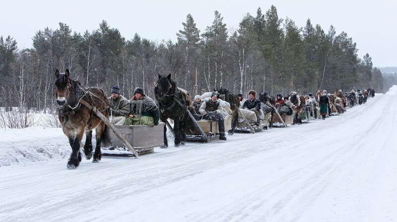Zwei Wochen sind die Pferdeschlitten auf der alten 'Kupferroute' von Falun in Schweden bis Røros in Nowegen unterwegs.Bild: © NDR/Jung & Rathjen Filmproduktion/Helmut Dietz