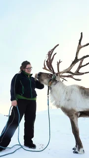 Karianne Søberg trainiert Rentiere auf einem Samihof in Røros.Bild: © ZDF und NDR/Jung & Rathjen Filmproduktion/Helmut Dietz.