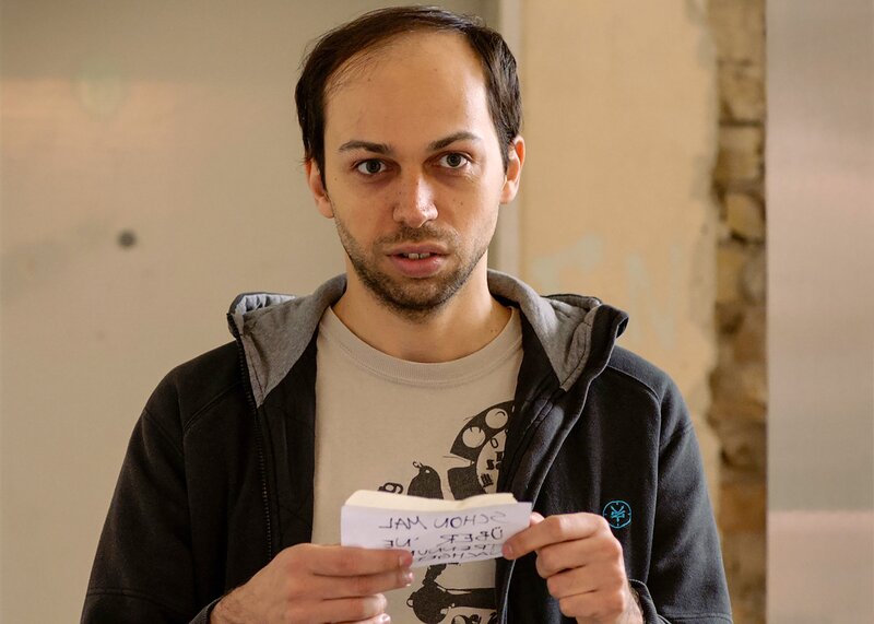 Das Stadtbild Berlins ist geprägt von Zetteln: Umzugshelfer, Wohnungsgesuche, Workshop-Angebote. Der Film spürt basierend auf dem gleichnamigen erfolgreichen Internet-Blog den Geschichten hinter den Zetteln nach. - Ein einsamer Computernerd (Tom Lass) wird durch ein zugelaufenes Kaninchen – oder ist es ein Hase? – dazu gebracht, bei seinen ihm unbekannten Nachbarn zu klingeln, und dabei erlebt er einige Überraschungen.Bild: © rbb/Darling Berlin/UCM.ONE
