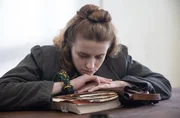 Sie hat annähernd eintausend Tage im KZ Auschwitz-Birkenau überlebt und will nun Zeugnis ablegen. Seweryna Szmaglewska (Katharina Stark) mit ihren Dokumenten und Aufzeichnungen im Zeugenwarteraum des Nürnberger Justizpalastes.Bild: © NDR/Márton Kállai