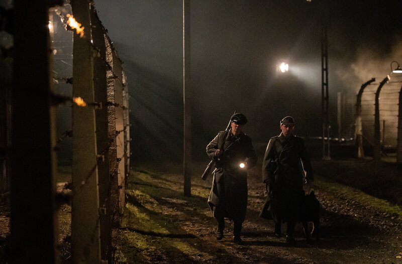 Konzentrationslager Auschwitz Birkenau. Bei einem Arbeitseinsatz erblickt KZ-Häftling Witold Wiśniewski (Max Schimmelpfennig, r.) auf der anderen Seite des Zauns ein bekanntes Gesicht: Seweryna SzmaglewskaBild: © NDR/Márton Kállai