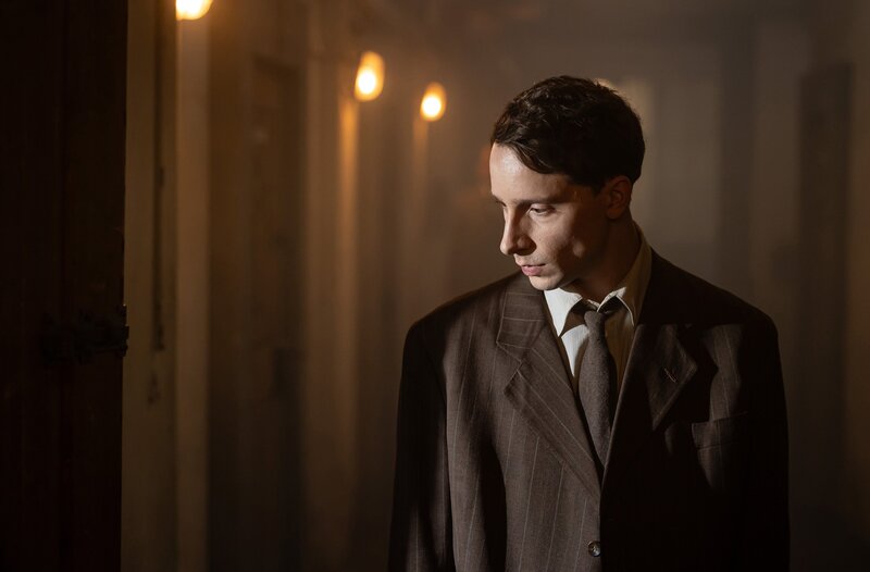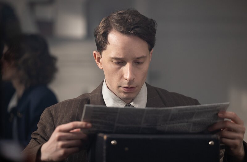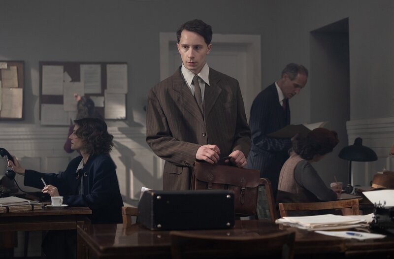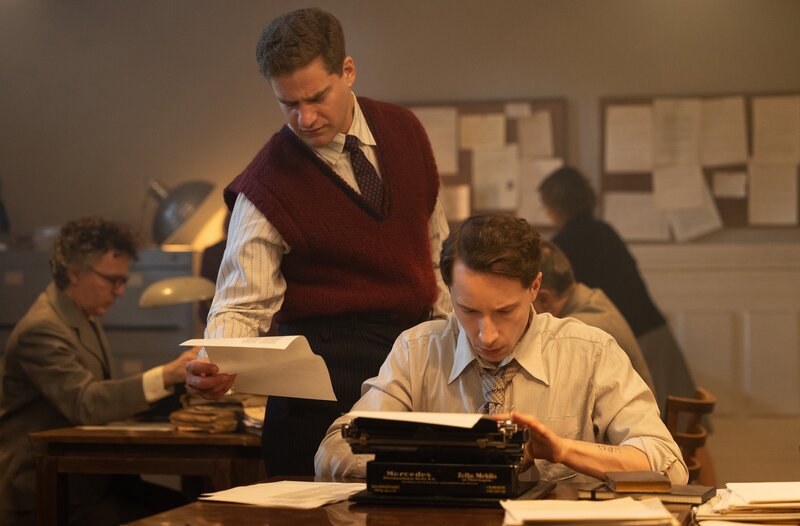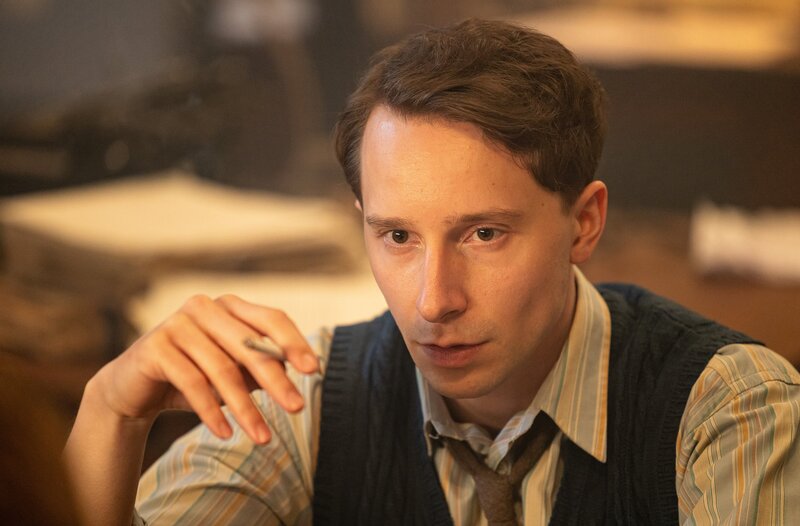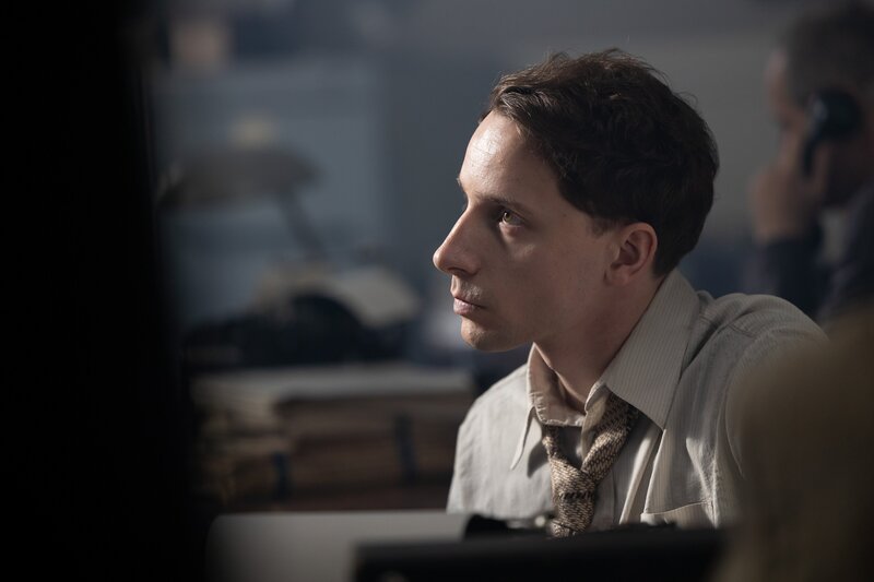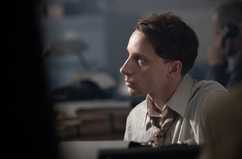 Bin ich der Aufgabe gewachsen? Ernst Michel (Jonathan Berlin) ist der jüngste Reporter bei den Nürnberger Prozessen.Bild: © ORF/NDR/Zeitsprung Pictures/Márton Kállai