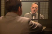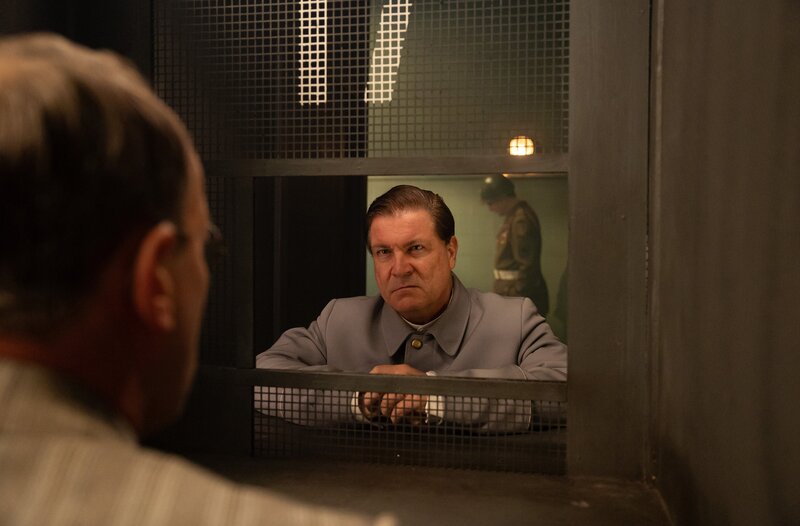 Otto Stahmer (Wotan Wilke Möhring) beobachtet in Görings Zelle das Aufeinandertreffen von Herman Göring und Ernst Michel.Bild: © NDR/Márton Kállai
