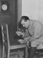 Hermann Göring frühstückt in seiner Zelle, während er auf die Eröffnung der Tagesverhandlung beim Internationalen Militärtribunal im Nürnberger Kriegsverbrecherprozess wartet.Bild: © phoenix/USHMM