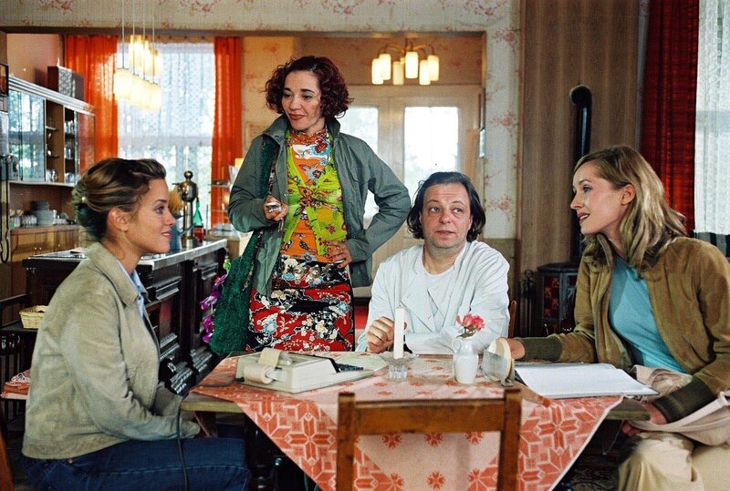 Die berühmte TV-Moderatorin Karen (Silvina Buchbauer, r.) glaubt sich mit ihrer Assistentin Beate (Anja Franke, 2.v.l.) in dem "Romantik Hotel", das die Hochzeiten von Prominenten ausrichtet. Von ihrem treuen Koch Pavel (Milan Steidler, 2.v.r.) ermutigt, lässt sich Nina (Muriel Baumeister, l.) darauf ein, in ihrem Lokal die Hochzeit auszurichten und damit vielleicht auch das Familienunternehmen vor dem Bankrott zu retten.