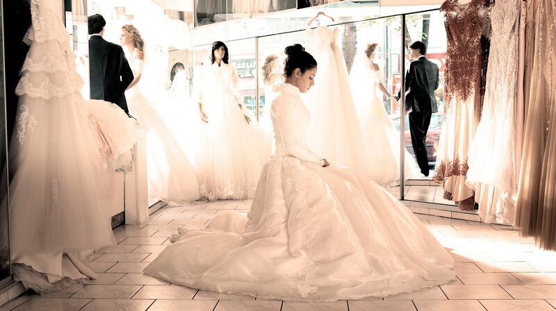 Eine Koproduktion von Vincent TV mit dem Rundfunk Berlin-Brandenburg (rbb), NDR, SWR, HR und WDR. Gefördert mit Mitteln des Medienboard Berlin-Brandenburg, nordmedia Film- und Mediengesellschaft Niedersachsen/Bremen mbH und des Deutschen Filmförderfonds (DFFF). - Kein Traum in weiß - Aynur (Almila Bagriacik) bei der Anprobe ihres HochzeitskleidesBild: © rbb/Vincent TV/Mathias Bothor