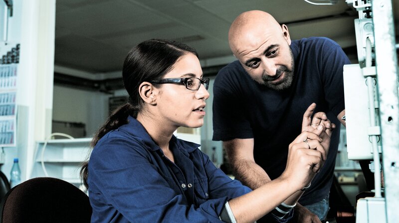 Eine Koproduktion von Vincent TV mit dem Rundfunk Berlin-Brandenburg (rbb), NDR, SWR, HR und WDR. Gefördert mit Mitteln des Medienboard Berlin-Brandenburg, nordmedia Film- und Mediengesellschaft Niedersachsen/Bremen mbH und des Deutschen Filmförderfonds (DFFF). - Aynur (Almila Bagriacik, li.) und ihr Ausbilder Bekir (Ozgür Karadeniz).Bild: © rbb/Vincent TV/Mathias Bothor