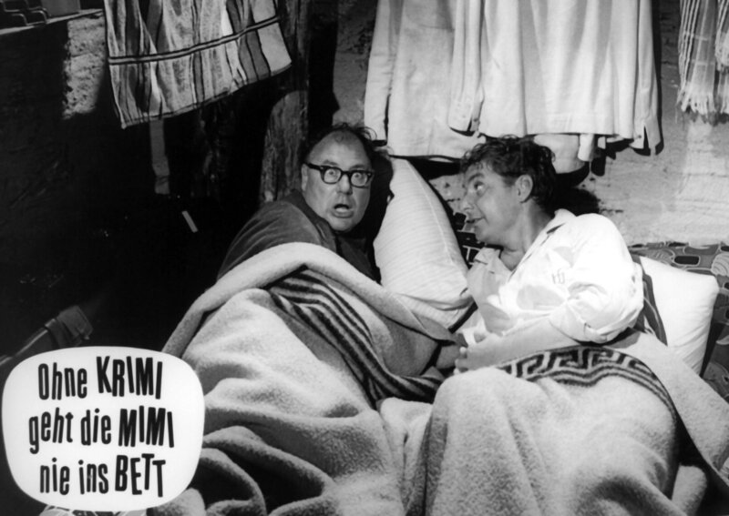 Konsul Keyser, ein erfolgreicher Fabrikant von Eiernudeln, ist alles andere als entzückt, als ihn seine Tochter Marion zu einem Campingurlaub auf einer kleinen Insel im Mittelmeer nötigt. Tatsächlich kommt es im Urlaub zu einigen Zwischenfällen mit anderen Gästen, die Keyser den letzten Nerv rauben. Besonders aufregend werden die turbulenten Ferien, als eine Räuberbande die Urlauber überfällt. Barbara wartet seit einiger Zeit darauf, dass ihr Freund Michael ihr endlich einen Heiratsantrag macht. Leider erweist sich Michael in dieser Hinsicht als äußerst begriffsstutzig, eine Eigenschaft, die die junge Frau ebenso ärgert wie Michaels übertriebene Leidenschaft für das Angeln, der er jedes Jahr auf einer kleinen Mittelmeerinsel frönt. Der Angelurlaub wird in diesem Jahr allerdings empfindlich gestört, als der Nudelfabrikant Konsul Keyser mit seiner Tochter Marion und seinem Schwiegersohn in spe Thomas Steffen überraschend auftaucht. Marion hat ihren Vater mit sanfter Gewalt zu einem Campingurlaub überredet. Konsul Keyser wiederum wünscht, dass Steffen bei seinen Bemühungen um Marion endlich Fortschritte macht. Michael ist von Anfang an schlecht zu sprechen auf die Eindringlinge in "sein" Refugium. Um sie zu vertreiben, lässt er sich etwas Besonderes einfallen. Doch dann werden die Urlauber von maskierten Räubern überfallen und ausgeraubt. Hinter dem Überfall steckt die temperamentvolle Frau des örtlichen Polizeichefs, die ihrerseits die ungebetenen Gäste vertreiben will. Heinz Erhardt hat in Franz Antels unterhaltsamem Schlagerlustspiel reichlich Gelegenheit, seine Paraderolle als gestresster, aber gutmütiger Vater zu spielen, der eigentlich nur seine Ruhe will, sich aber ständig mit den Unbilden des Lebens und den Anforderungen der lieben Familie abplagen muss. Mit von der vergnüglichen Partie sind viele populäre Film- und Schlagerstars der 1950er- und 60er-Jahre wie Karin Dor, Harald Juhnke, Bill Ramsey und Edith Hancke, die in einer Nebenhandlung das Pärchen Bill und Mimi spielen, Trude Herr und Gus Backus. Trude Herr war eine der bevorzugten Partnerinnen Heinz Erhardts, die unter anderem in "Natürlich die Autofahrer" die gestresste Fahrlehrerin des Komikers spielte und den "letzten Fußgänger" ein Stück seines Weges begleitete. "Ohne Krimi geht die Mimi nie ins Bett" ist ein Remake des Films "Die Leute mit dem Sonnenstich", der 1936 nach dem gleichnamigen Roman von Horst Biernath entstand. Die Dreharbeiten fanden im damals jugoslawischen Rovinj statt.