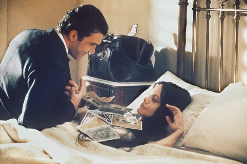 Bonnie Castle (Angelina Jolie) gibt sich als Julia Russell aus, um an Luis Antonio Vargas (Antonio Banderas) Geld zu gelangen.Bild: © ZDF und Lourdes Grobet