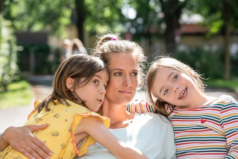 L-R: Erna (Ava Petsch), Ben Kornmann (Florian David Fitz), Oskar/Lili (Laurì)Bild: © ORF/PRO7/Warner