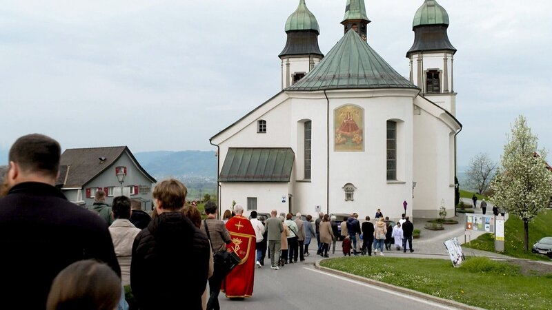 Die Basilika Maria Bildstein (A) mit Blick auf den Bodensee am Palmsonntag.Bild: © ORF/Landesstudio Vorarlberg
