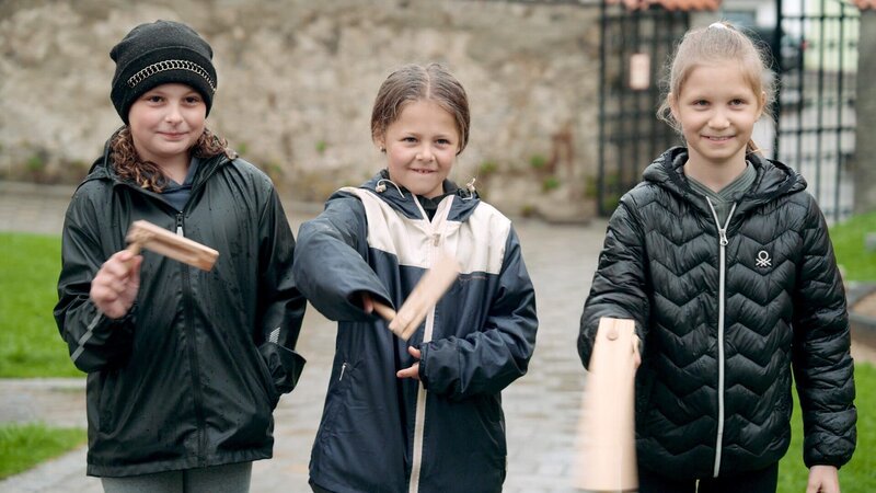 Drei Ratschenkinder in Reichenfels.Bild: © ZDF und ORF/Alpha Vision Film- und Fernsehproduktion