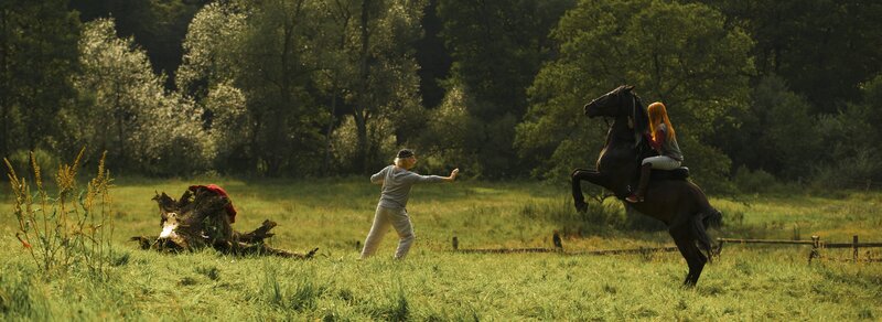 Anstatt die Ferien wie geplant in Frankreich zu verbringen, kehrt Mika (Hanna Binke) auf den Kaltenbach-Hof zurück, um ihren geliebten Hengst Ostwind wiederzusehen.Bild: © Constantin Film Verleih GmbH / Tom Trambow / MKNS