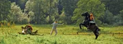 Herr Kaan (Tilo Brückner) und Mika (Hanna Binke) trainieren mit Ostwind.Bild: © Constantin Film Verleih GmbH / Tom Trambow / MKNS