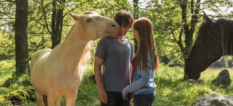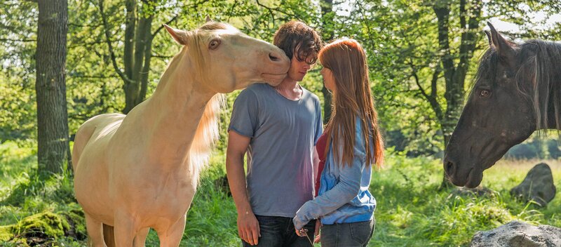 Milan (Jannis Niewöhner) und Mika (Hanna Binke) mit Hengst Ostwind und der SchimmelstuteBild: © Constantin Film Verleih GmbH / Tom Trambow / MKNS