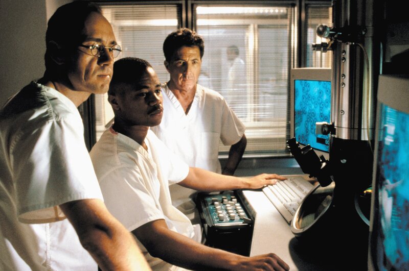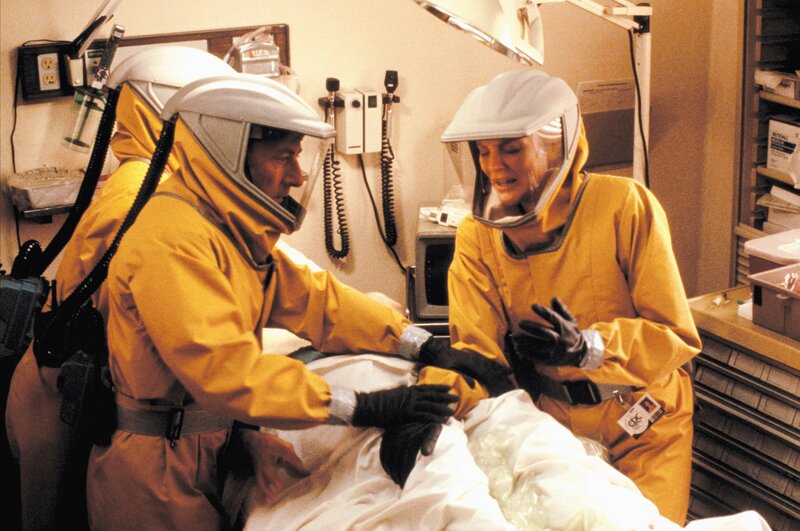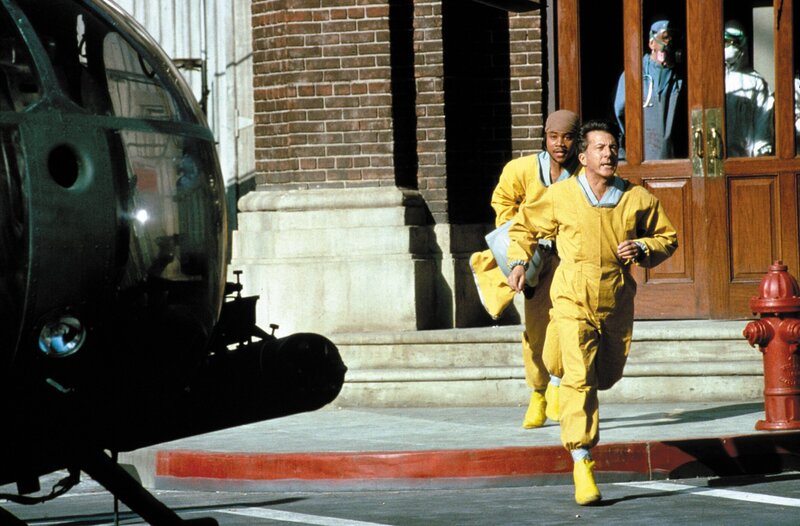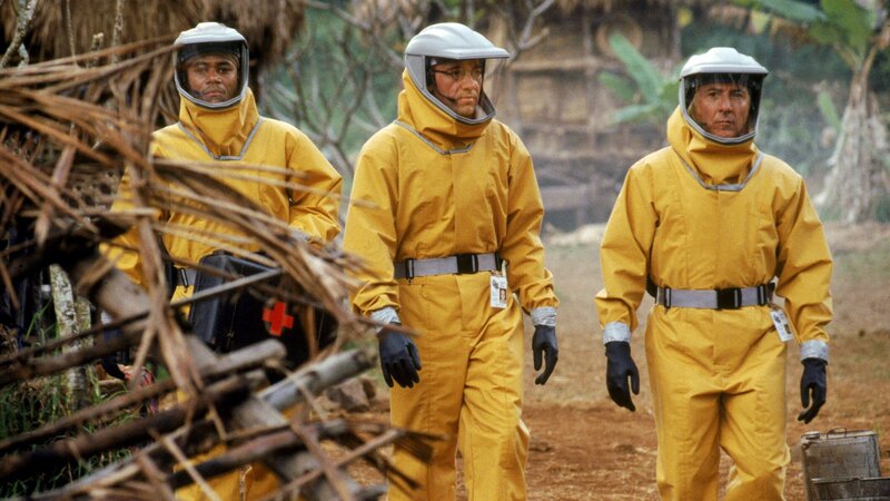 in todbringender Virus wird aus dem afrikanischen Dschungel in eine amerikanische Kleinstadt eingeschleppt. Militärarzt Sam Daniels (Dustin Hoffman) arbeitet auf Hochtouren, um ein Anti-Serum zu entwickeln..Bild: © Warner Bros., Punch Productions