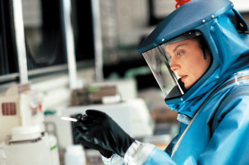 Virologin Roberta Keough (Rene Russo) arbeitet an einem Anti-Serum gegen den todbringenden Virus namens Motaba.Bild: © Warner Bros., Punch Productions
