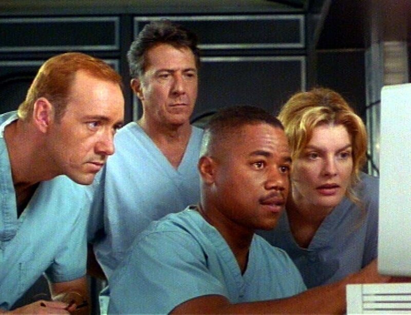 Fieberhaft versuchen die Spezialisten den gefährlichen Virus zu bekämpfen...(Foto, v.li.n.re.: Kevin Spacey, Dustin Hoffman, Cuba Gooding Jr. und Rene Russo)Bild: © RT2; RTL II Bildredaktion