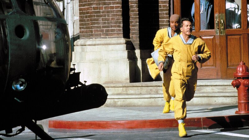 Für Sam Daniels (Dustin Hoffman, l.) und Robby Keough (Rene Russo, r.) beginnt ein gnadenloser Wettlauf gegen die Zeit. Wird kein Mittel gefunden, muss eine ganze Stadt dem Erdboden gleichgemacht werden, mitsamt allen Einwohnern ...Bild: © RTL II