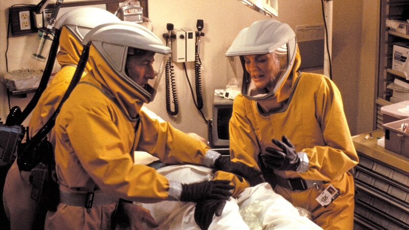 Virologe Sam Daniels (Dustin Hoffman) und Dr. Roberta Keough (Rene Russo) versuchen, das Leben eines mit dem Motaba-Virus infizierten Patienten zu retten.Bild: © Nitro