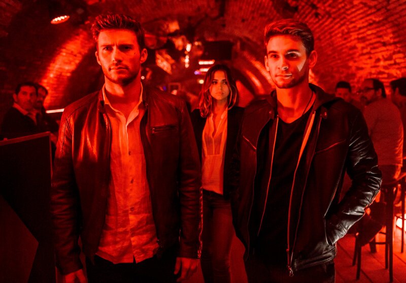 (v.l.) Max Klemp (Clemens Schick) trifft sich mit Andrew Foster (Scott Eastwood), Stephanie (Ana de Armas) und Garrett Foster (Freddie Thorp), um ihnen dabei zu helfen, Morier zu hintergehen.Bild: © TVNOW / OVERDRIVE P