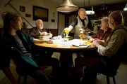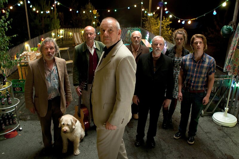 Maslow (Joachim Król) hat extra ein Treffen auf der Dachterrasse arrangiert, damit Kurt (Bernd Tauber), Horst (Christof Wackernagel), Karl (Klaus A. Müller-Oi), Willi (Olaf Andreas Krätke) und vor allem Lena (Paula Beer) das erstaunliche Flugobjekt sehen. Einzig Ben (Sven Gielnik) ist eingeweiht.Bild: © SWR/Bavaria Fernsehproduktion/Daniela Incoronato