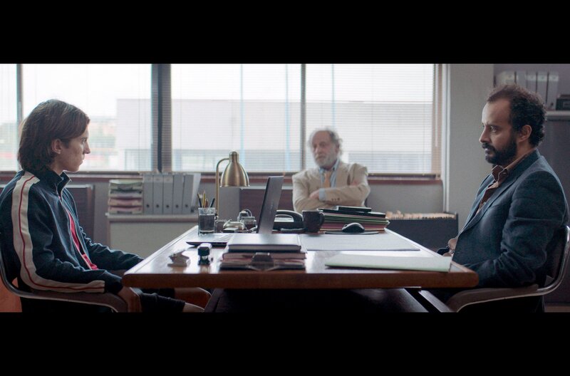 Im Laufe des Verhörs nach der Razzia bei einer Party kommen die Polizisten (João Pedro Bénard, Mi., und Karim Bel Kacem, re.) einem Geheimnis aus Patricks (Hugo Fernandes, li.) Vergangenheit auf die Spur.Bild: © O Som e a Fúria/augenschein/Vasco Viana