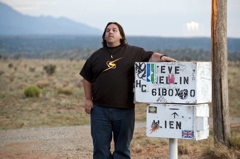 Für den Science-Fiction-Fan Clive Gollings (Nick Frost) geht ein Traum in Erfüllung: Eine Fahrt auf dem Extraterrestrial Highway, vorbei an dem berühmten Briefkasten, der "Black Mailbox" ...Bild: © Universal Pictures / Wilson Webb