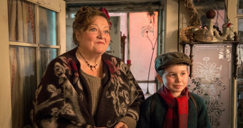 Beda (Marianne Sägebrecht) und der Nachbarsjunge kommen am Weihnachtsabend zu Pettersson und Findus.Bild: © ZDF und Mathias Neumann