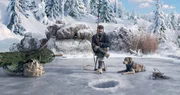 Gustavsson (Max Herbrechter) und Happo beim Fischen am Eisloch.Bild: © ZDF/Mathias Neumann