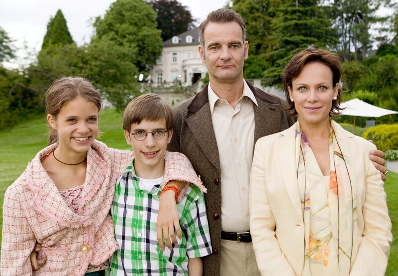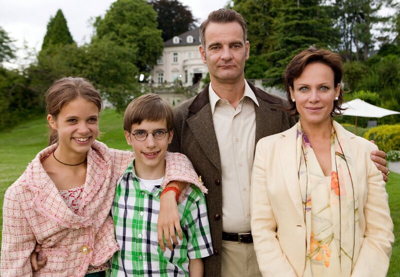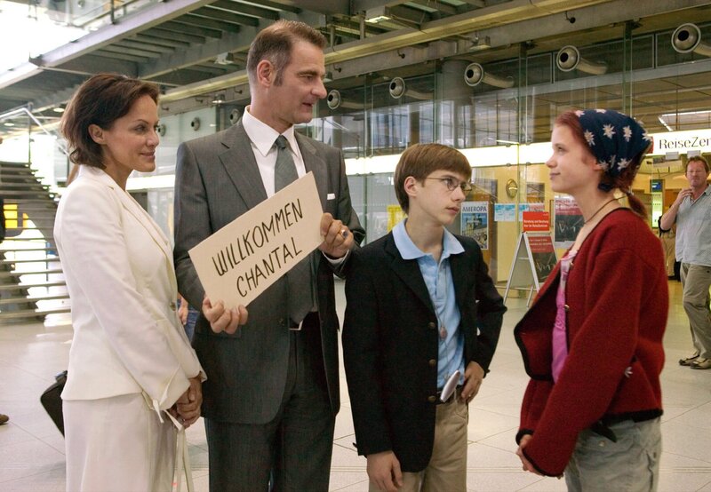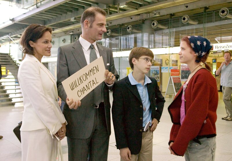 Die 13-jährige Pik (Sidonie von Krosigk, re.) ist auf der Flucht und gibt sich auf dem Flughafen als französische Austauschschülerin aus, um bei der Operndiva Ida Königstein (Sonja Kirchberger), ihrem Gatten Herrmann (Heinrich Schafmeister, 2.v.li.) und ihrem Sohn Amadeus (Robin Becker) unterzutauchen.